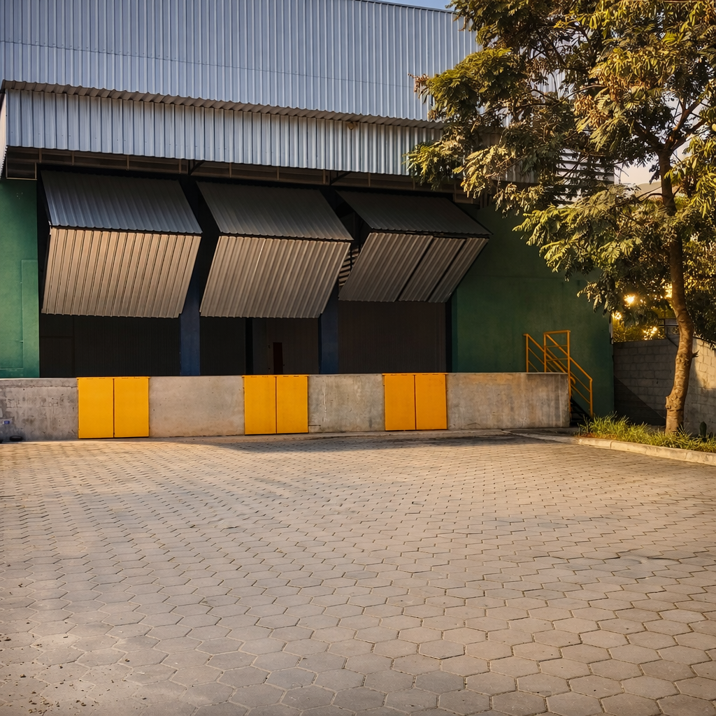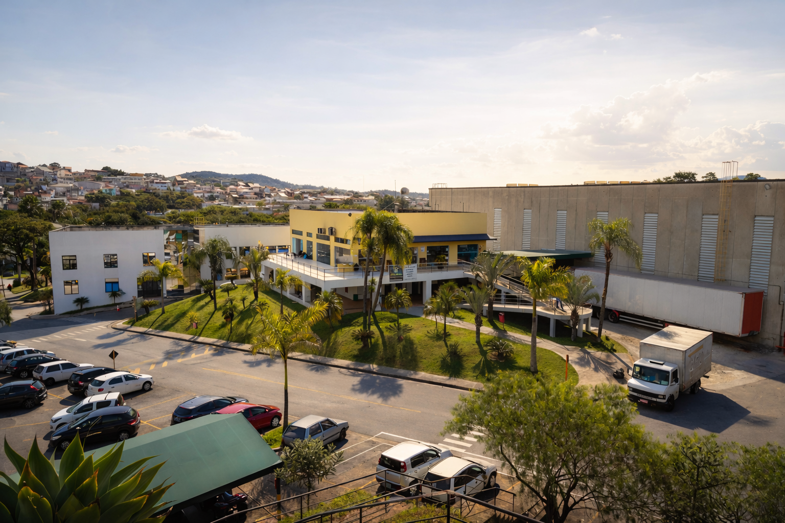 Pátios amplos para estacionamento, manobra segura e fluidez operacional.
